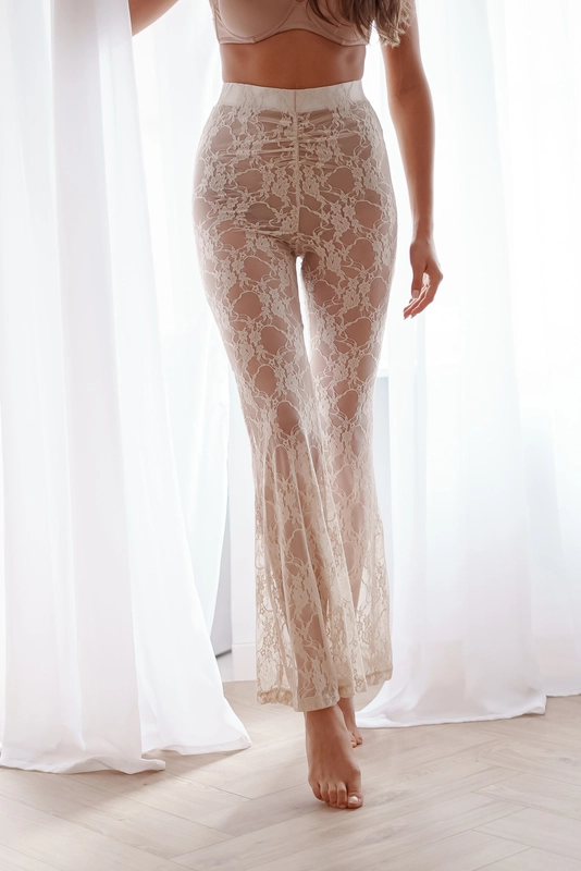 Lace bell-bottom pants are a unique proposition for women who appreciate fashion with character. Made entirely of striking stretch lace, they sit beautifully on the figure and catch the eye with a subtle pattern. The high top and flared legs optically elongate the waist, creating a slender and elegant line. It's the perfect choice for evening outings, parties, festivals and summer styling with claws.