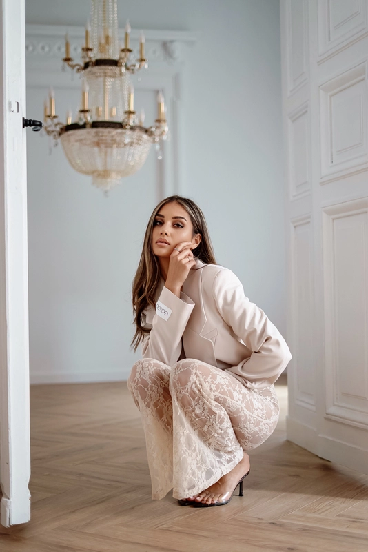 Short jacket is the perfect complement to both elegant and everyday outfits. Its universal cut beautifully emphasizes the waist, and its slightly padded form adds class and character to the silhouette. Matches perfectly with dresses, high-waisted pants or pencil skirts. Great for business, evening, as well as smart casual stylingal.